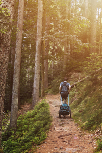 Erlebe Wandern einmal ganz anders! Bei dieser besonderen Wanderung trägst du dein Gepäck nicht wie gewohnt auf dem Rücken, sondern ziehst es bequem hinter dir her – auf einem speziellen Wagen, der mit einem innovativen Spezialgeschirr an dir befestigt wird. Diese extra für Langstreckenwanderungen entwickelten Wägen ermöglichen es dir, dich voll und ganz auf die Natur, die Aussicht und das Wandererlebnis zu konzentrieren, ohne von schwerem Gepäck belastet zu sein. Entdecke die Freiheit, längere Strecken leichter zu meistern und dabei trotzdem alles Notwendige dabei zu haben.
