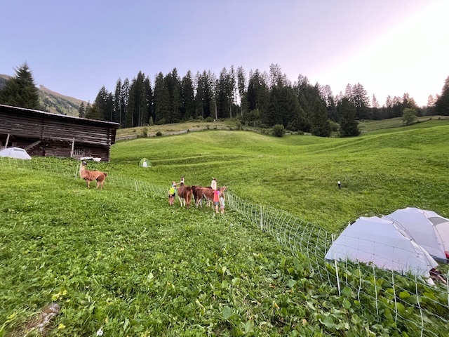 Ein ganz besonderes Abenteuer erwartet unsere Familie in der eindrucksvollen Bergwelt des Kantons Graubünden in der Nordschweiz: Eine zweitägige Wanderung mit Lamas! Die gutmütigen Tiere tragen unser Hauptgepäck, während wir gemeinsam mit den Tieren durch malerische Landschaften, vorbei an klaren Bächen und duftenden Alpweiden ziehen. Am Abend schlagen wir unser Zeltlager unter freiem Himmel auf einer idyllischen Alpwiese auf – gemeinsam mit den Lamas, die uns den ganzen Tag begleitet haben. Die Nacht verbringen wir mitten in der Natur, umgeben von Stille, Sternenhimmel und dem leisen Schnauben unserer tierischen Begleiter. Ein unvergessliches Erlebnis für Groß und Klein! Ideal für Familien!