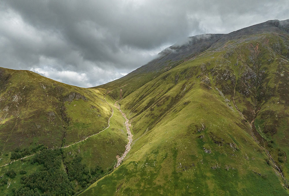 Heute lassen wir es ruhiger angehen. Wir wandern durch ein wunderschönes Tal, überqueren Wildbäche und passieren mehrere glitzernde Bergseen. Diese Etappe bietet die perfekte Gelegenheit, die unberührte Natur Schottlands in aller Ruhe zu genießen. Am Abend übernachten wir direkt an einem großen See.